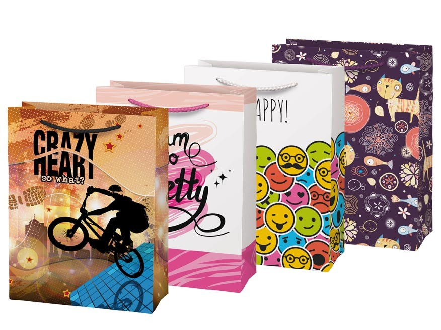 Amikor még a részletek is számítanak!Játékos, gyengéd, stílusos - egy ajándéktáska, amely első látásra felkelti a figyelmet. A kínálat több mintát tartalmaz: aranyos macskafej, vad leopárdminta, élénk virágok és modern vonalak. Mindegyik más hangulatot kölcsönöz az ajándékának, de mindig garantálja, hogy az ajándék különleges legyen.A strapabíró papírnak és a zsinórfülnek köszönhetően nemcsak szép, hanem praktikus is - egyszerűen öröm minden részlete.Méretek: 190x250x90