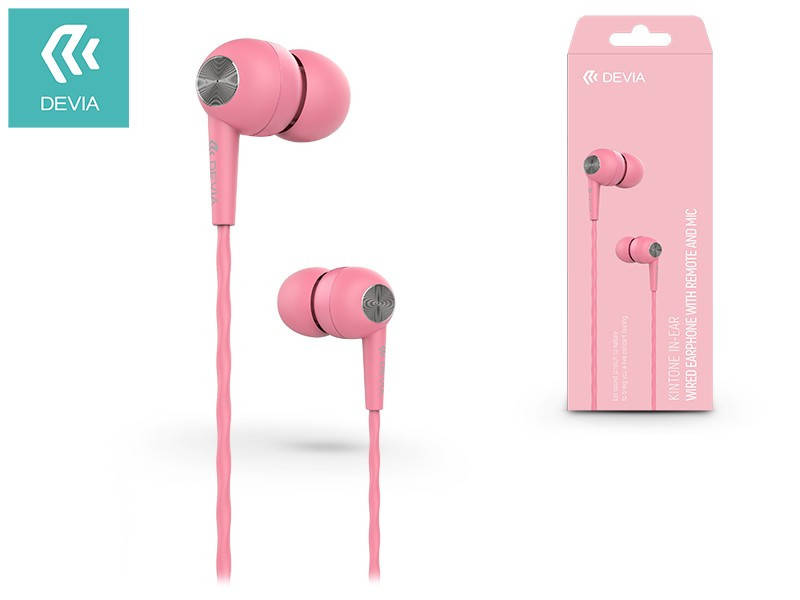 Devia univerzális sztereó felvevős fülhallgató – 3,5 mm jack – Devia Kintone In-Ear Wired Earphones – pink