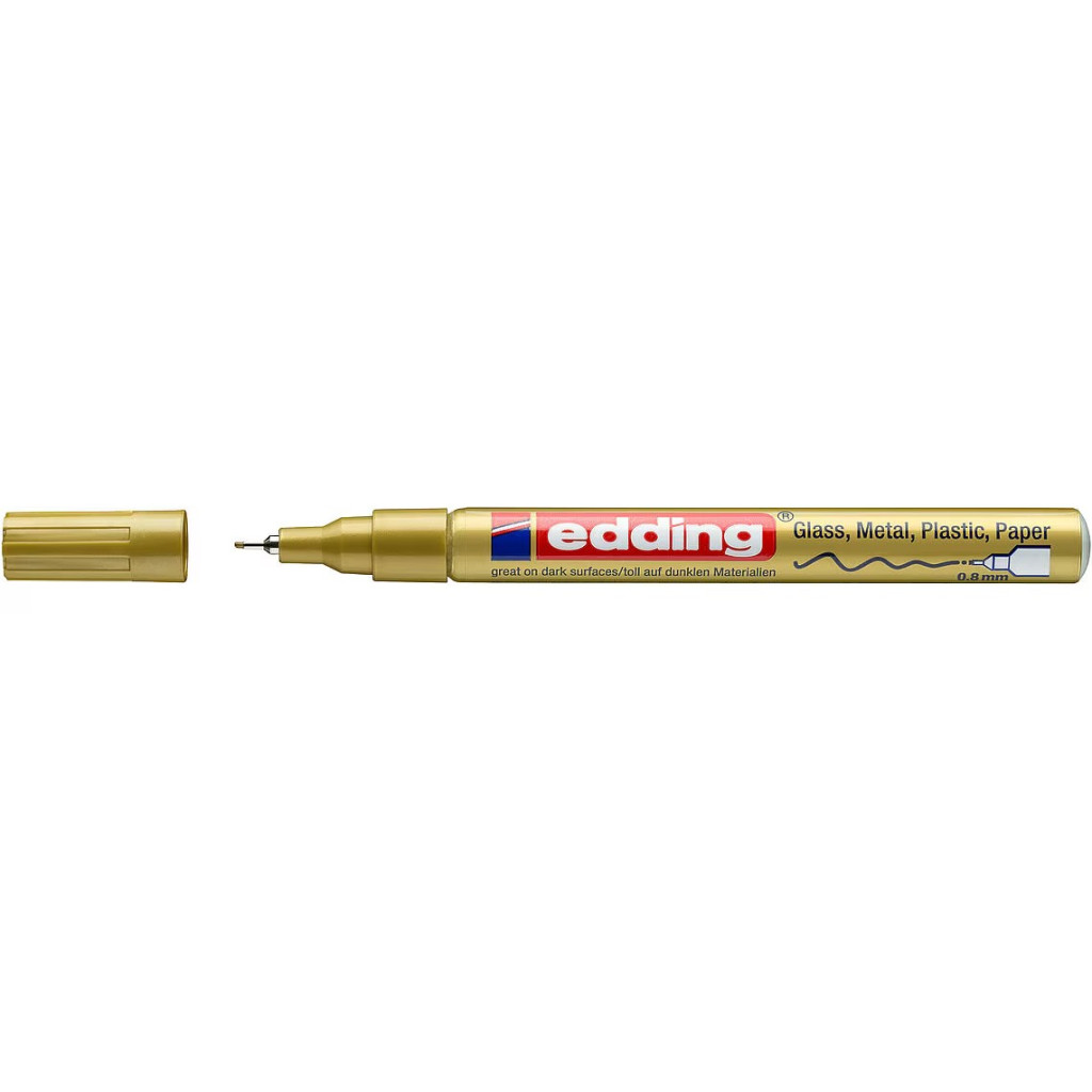 Üveg, porcelán, műanyag, fém illetve szinte minden felület feliratozására, jelölésére alkalmas. különösen ajánlott szennyezett felületekhez, lakk- és dekorációs fémtestű marker. Kerekített csúcs, fémtest, permanent, lakkszerűen fedő festékkel töltve. Gyorsan száradó festék, írásképe törlés- és vízálló, magas fény- hő- és törlésálló. Festékadagolása egyenletes, szelep vezérli, pótcsúcsolható (EDDDING 780 N írócsúcs). Vonalvastagság: 0,8 mm