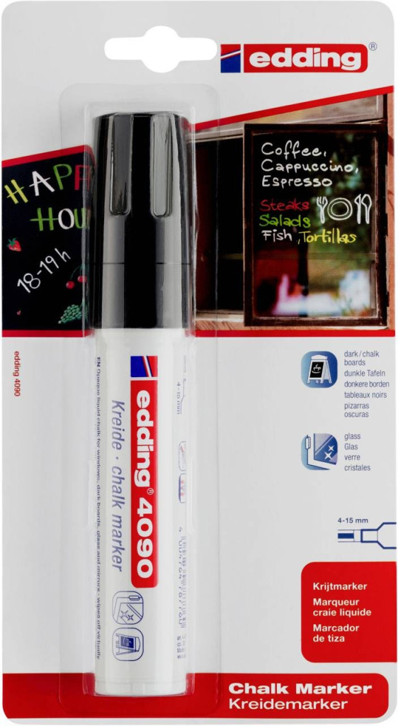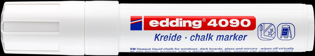 Krétamarker nem permanens, extra széles vonalú dekorációhoz és íráshoz pl. ablakon, fekete táblán, üvegen, plexin vagy tükrön. A vágott írócsúcs vonalvastagsága 4-15 mm. A semleges szagú, átlátszatlan, vízbázisú folyékony kréta nedves törlővel eltávolítható szinte az összes nem nedvszívó felületről.
