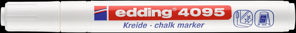 Krétamarker nem permanens dekorációhoz és íráshoz ablakon, fekete táblán, üvegen, plexin vagy tükrön. A kerekített csúcs vonalvastagsága 2-3 mm. A semleges szagú, átlátszatlan, vízbázisú folyékony kréta nedves törlővel eltávolítható szinte az összes nem nedvszívó felületről.
