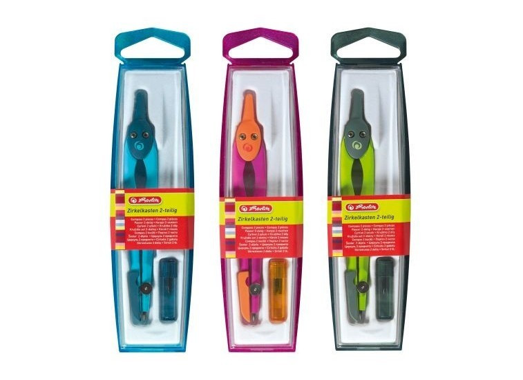 Iskolai körző színes, pótheggyel, hegyvédővel.
