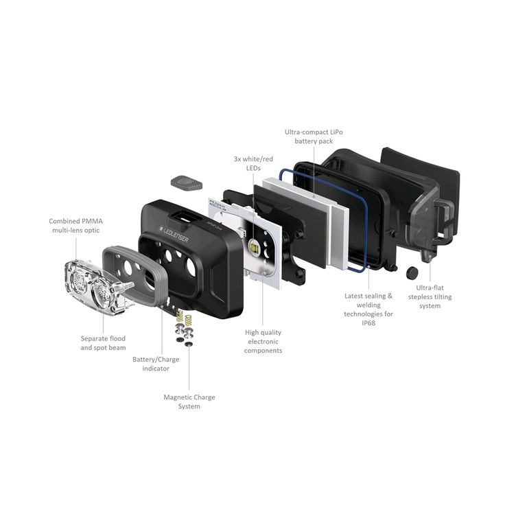 A HF4R Core vékony és könnyű Ledlenser alapmodell mindennapi használatra. Vörös elülső fénye, valamint a két fényforrás által biztosított tökéletes közeli és távoli megvilágítás teszi ideális fejlámpává kempingezéshez vagy kutyasétáltatáshoz. A fokozatmentesen dönthető lámpafej rugalmasságot biztosít, a vékony fejpánt pedig egyedileg állítható. A beépített akkumulátor a Magnetic Charge System segítségével könnyedén feltölthető. További hasznos funkciói közé tartozik a praktikus szállítási zár és az akkumulátor-állapotjelző.