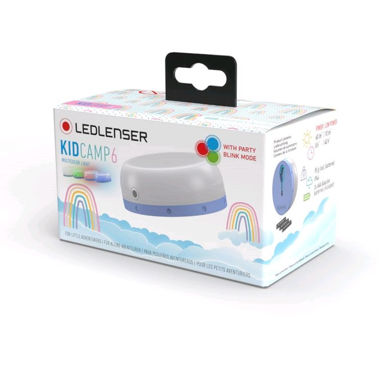 A gyerekek imádják saját szemükkel felfedezni a világot – és ezentúl a saját lámpájukat is használhatják. Játékkal vagy olvasással eltöltött hangulatos estékhez: A Kidcamp6 tökéletes környezeti megvilágítást biztosít négy különböző színben való fénnyel. Kihajtható kampónak köszönhetően könnyű felszerelni, például sátorba vagy lakókocsiba. A kiegészítő party villogás üzemmód biztosan színes fénypontja bármelyik gyerek születésnapi partijának. Figyelmeztetés: 36 hónaposnál fiatalabb gyermekek számára nem alkalmas. Felnőtt személyes felügyelete mellett használható.