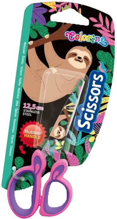 A mosolygós lajhár motívumokkal díszített, dzsungel dizájnos termékeink a vad természet kedvelőinek nagy kedvence.Színes gyerekolló vidám, lajháros mintával, puha gumírozott nyéllel és lekerekített véggel.