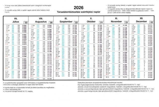 SZÁMFEJTÉSI NAPTÁR (TB) 2026 2 OLDALAS