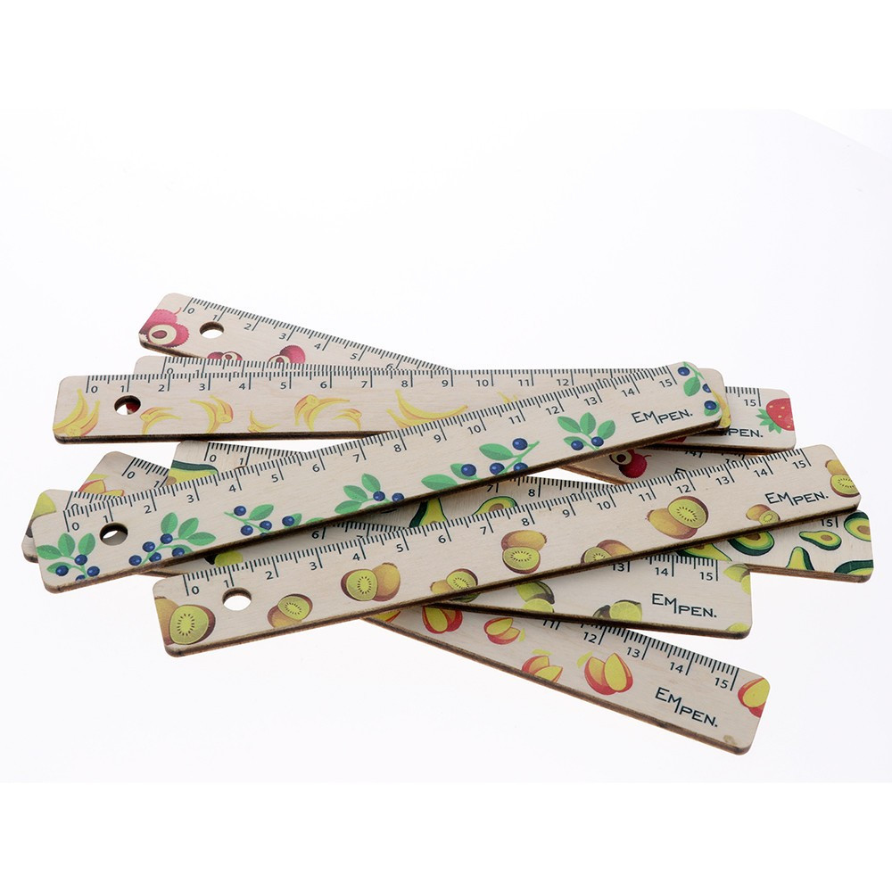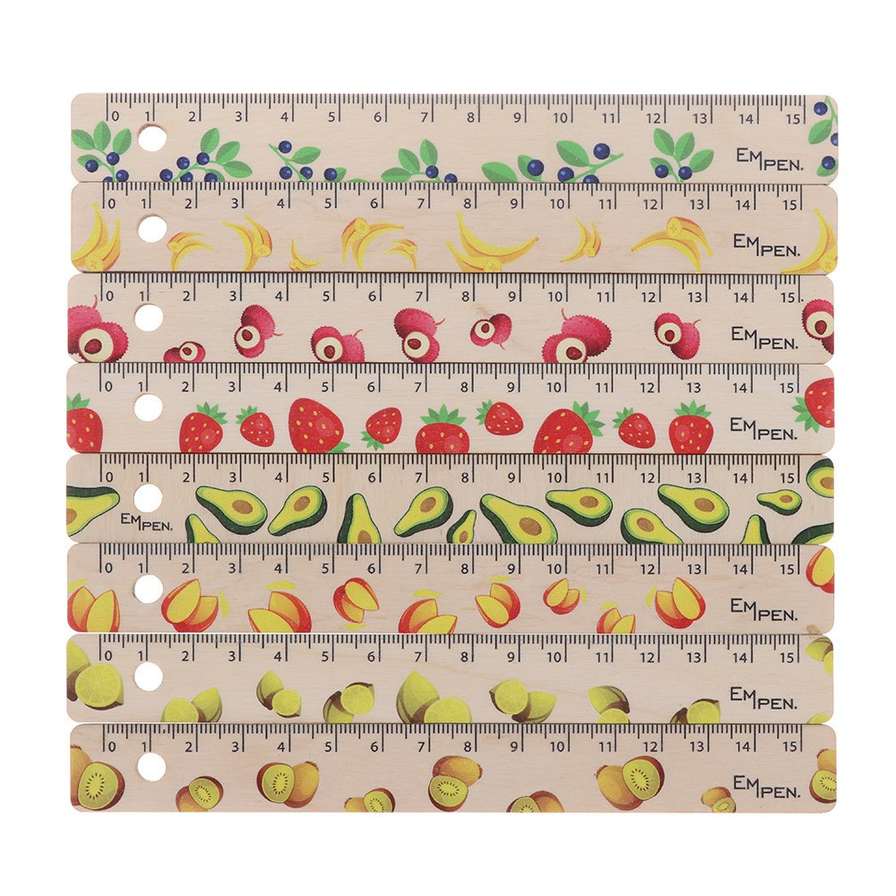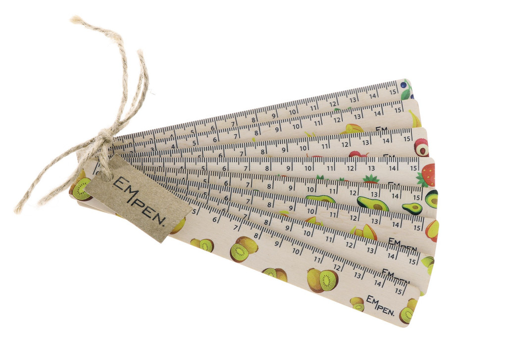 EMPEN Atreyu 8 darab,15 cm hosszúságú vonalzó készlet. A vonalzókat gyümölcs motívummal díszítettük. Bal oldalán található lyuk felakasztásra szolgál. Csehországban tervezték és gyártották.
